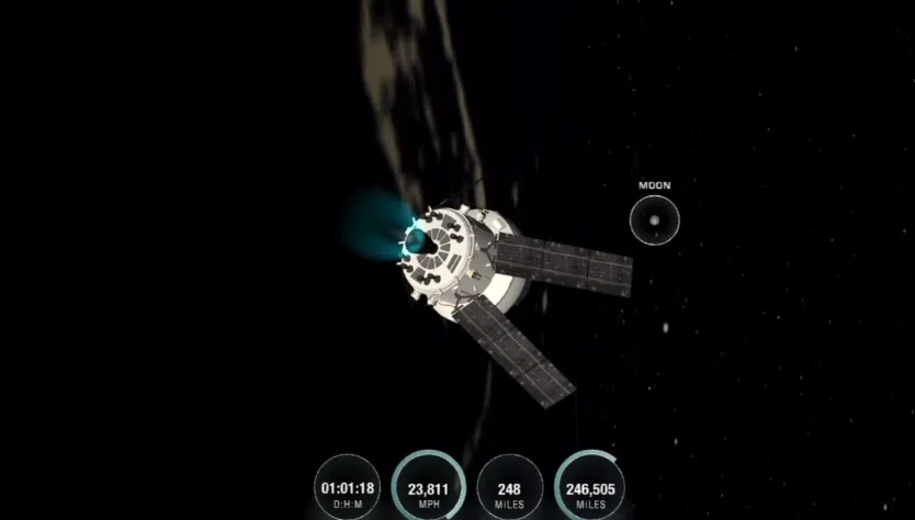 A cápsula Orion entrou na esfera de influância da Lua na madrugada desta segunda-feira.